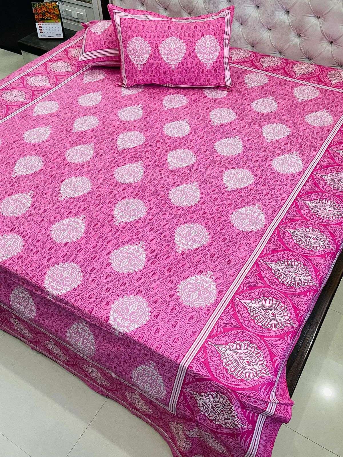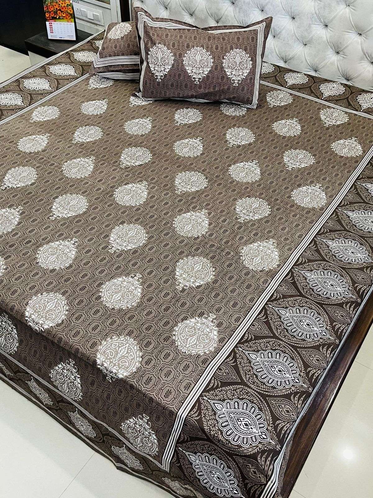Daabu Print Double Standard Size Bedsheet with 2 Zipped Pillow Cover
