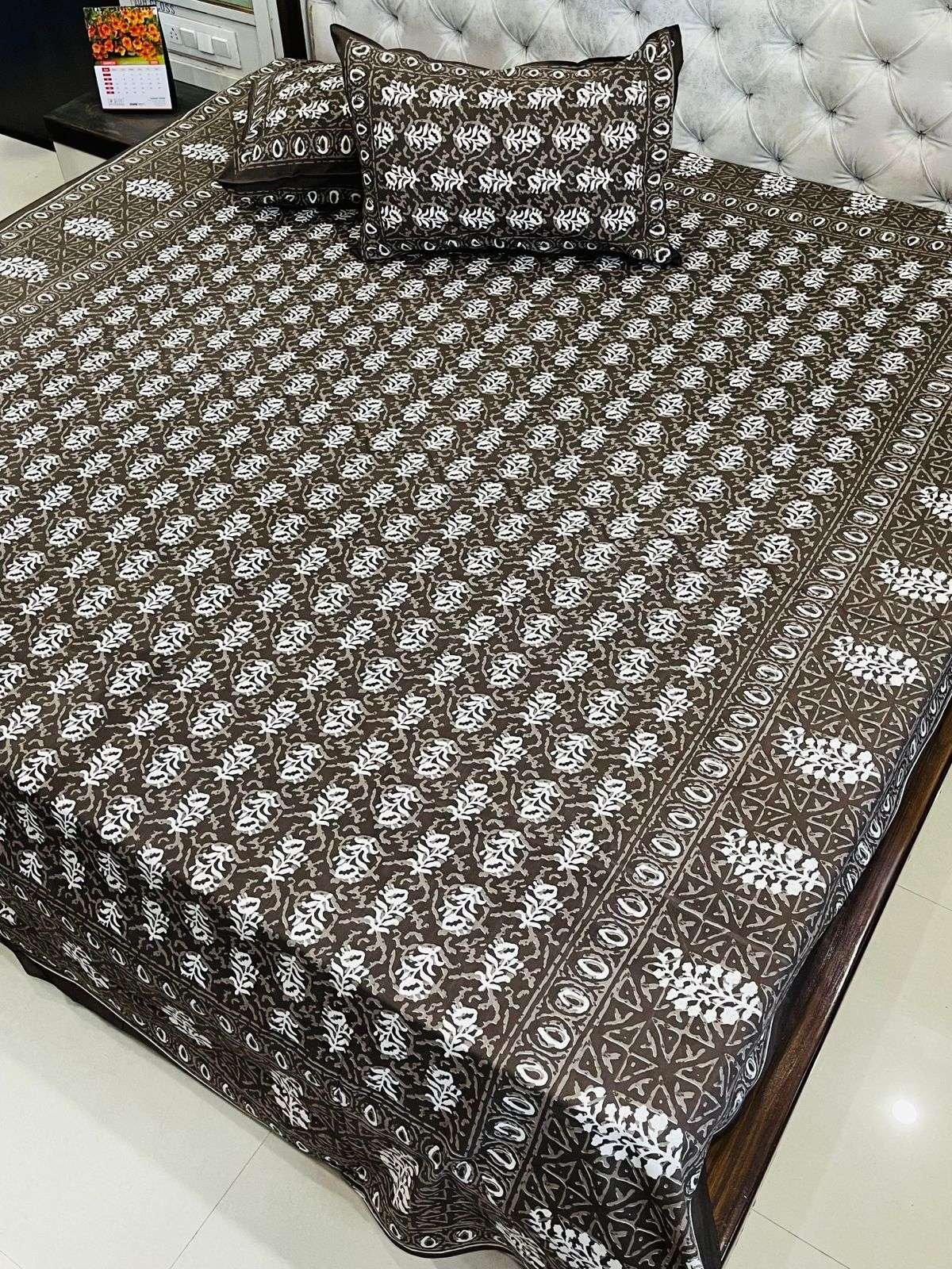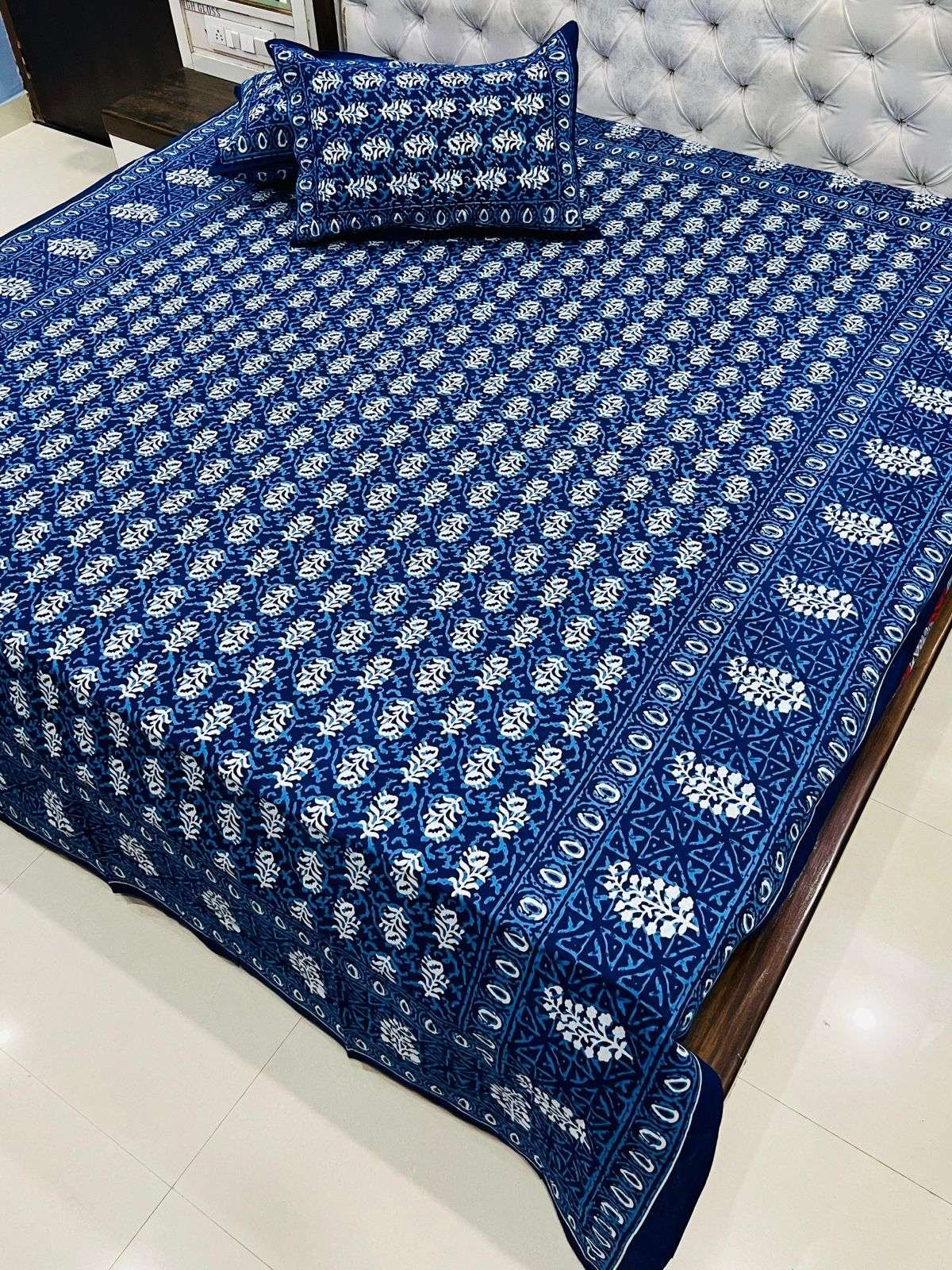 Daabu Print Double Standard Size Bedsheet with 2 Zipped Pillow Cover